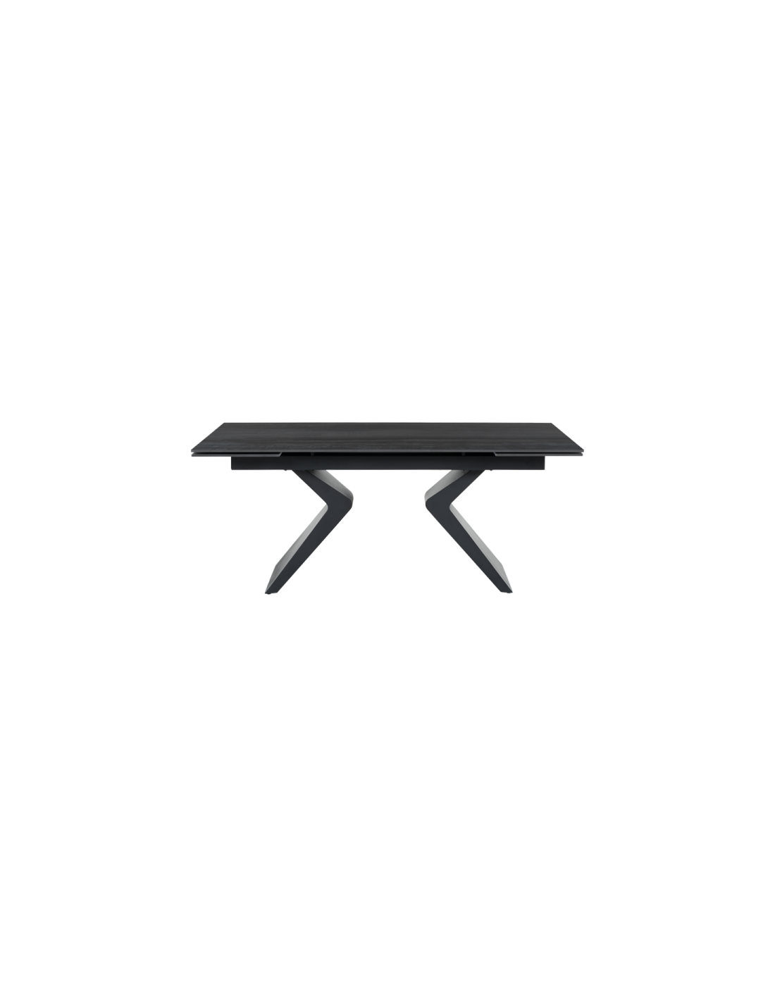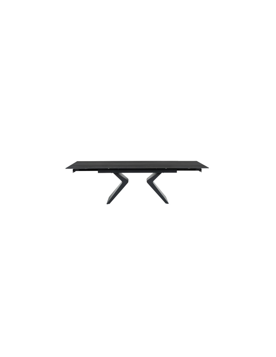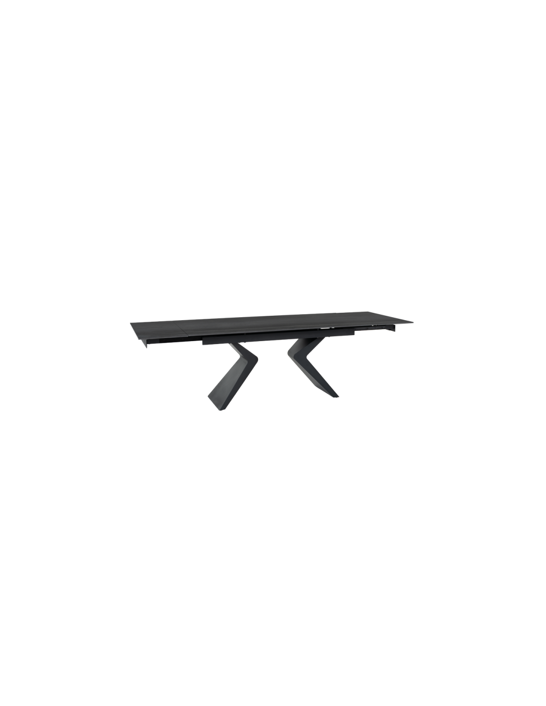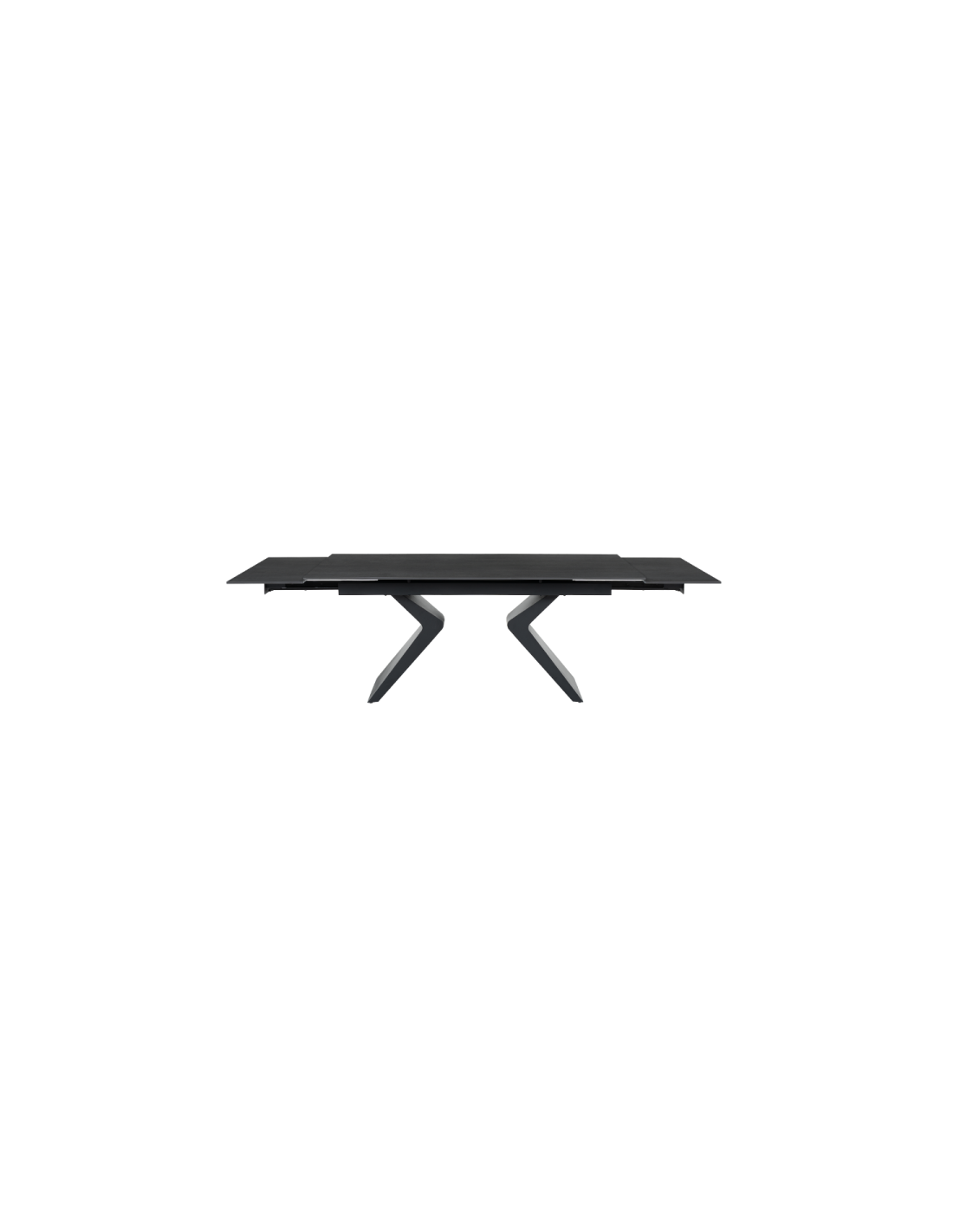 Разтегателна трапезна маса GUAMA впечатлява със своя модерен и изчистен дизайн, който комбинира елегантност и практичност. Плотът е изработен от керамика с дебелина 12 мм, отличаваща се с висока устойчивост на надраскване и лесна поддръжка. Праховобоядисаната метална основа осигурява стабилност и придава съвременен индустриален облик на масата. Благодарение на удобния механизъм за едновременно разтягане от двете страни, моделът лесно увеличава дължината си, когато посрещате повече гости. В изискан черен цвят, GUAMA е перфектният избор за модерна трапезария с характер.