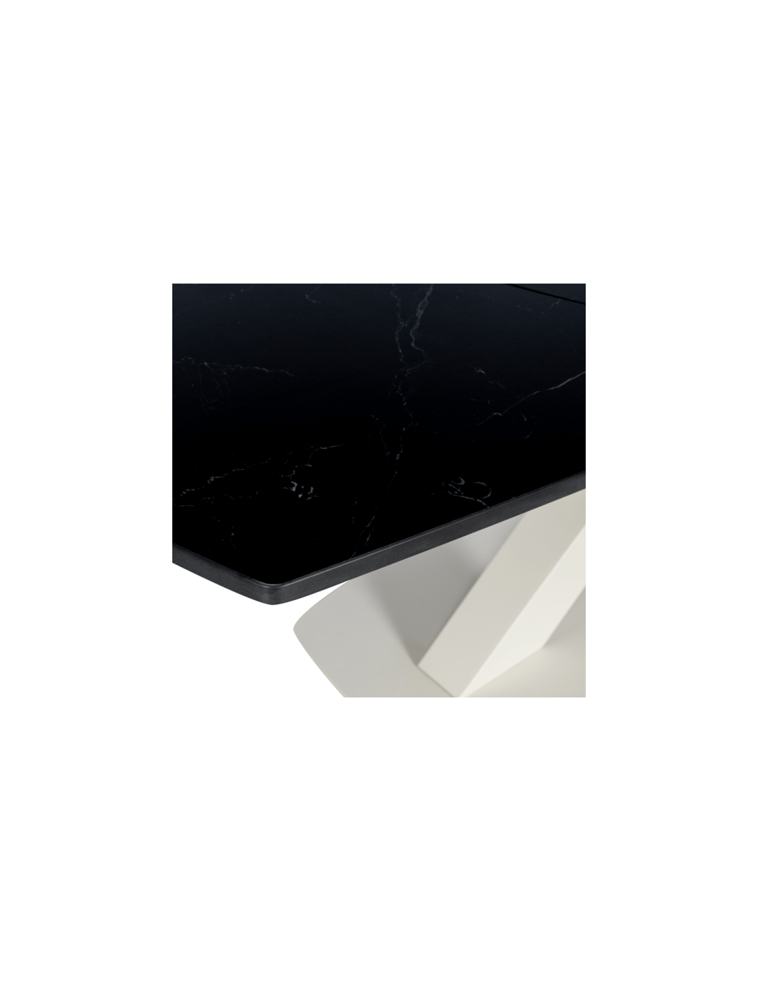 Разтегателна трапезна маса MATEO в изискан кремав цвят съчетава модерна визия с практичност. Плотът от керамика добавя издръжливост и изтънчен стил, докато основата от праховобоядисан метал впечатлява със своята здравина и елегантност. Благодарение на разтегателния механизъм, масата лесно се трансформира от 130 см до 190 см, осигурявайки достатъчно пространство за вашите специални моменти. MATEO е не просто мебел, а акцент, който ще придаде свежест и класа на вашата трапезария.
