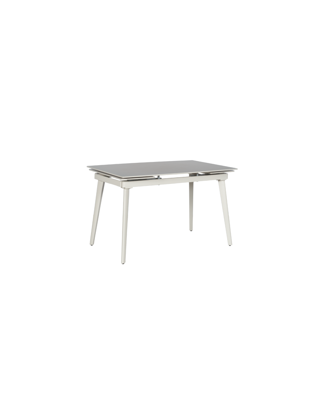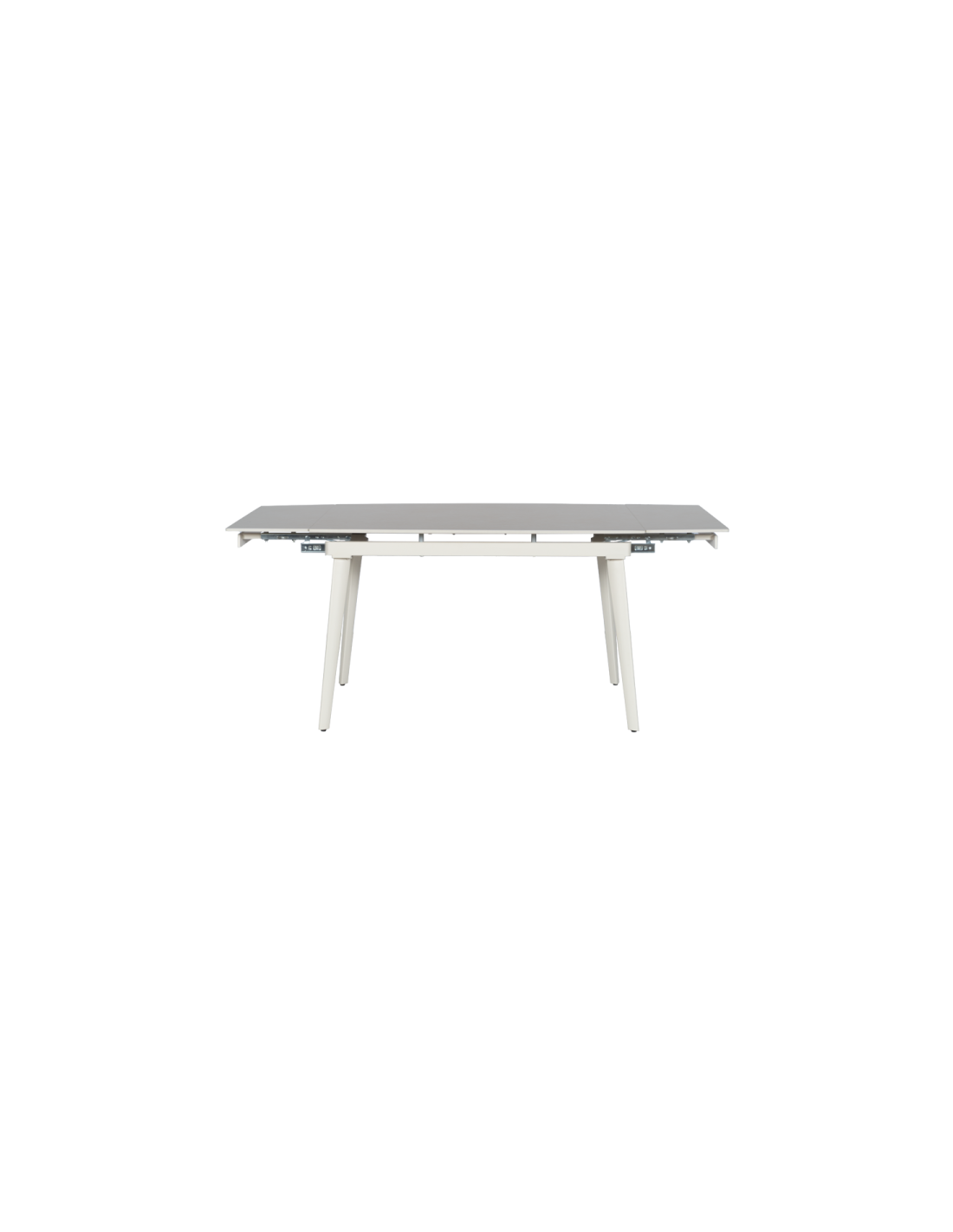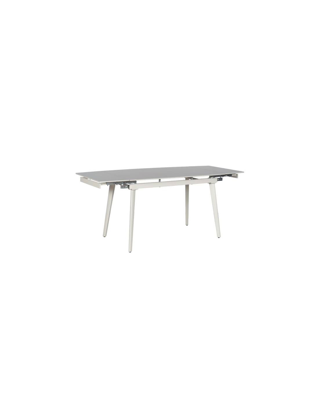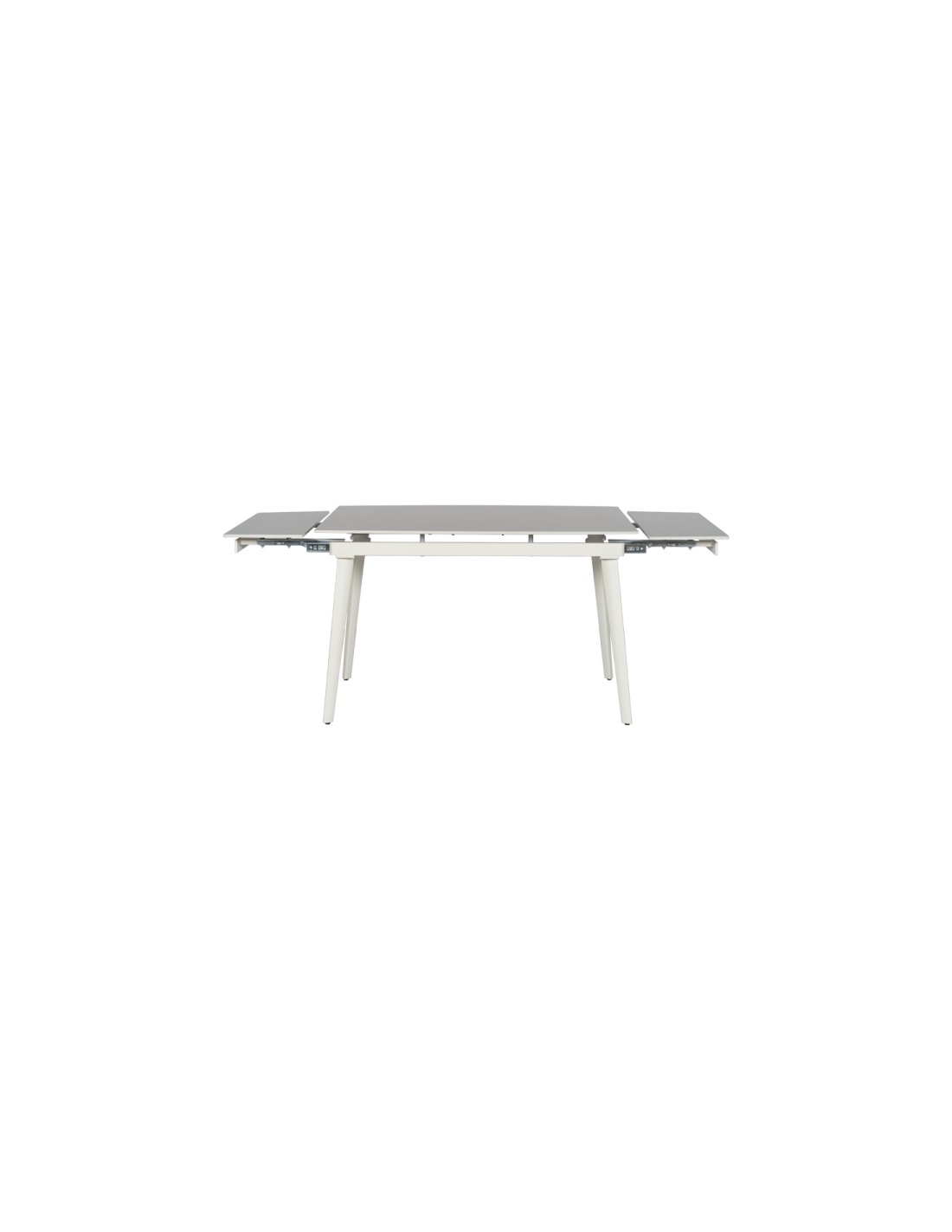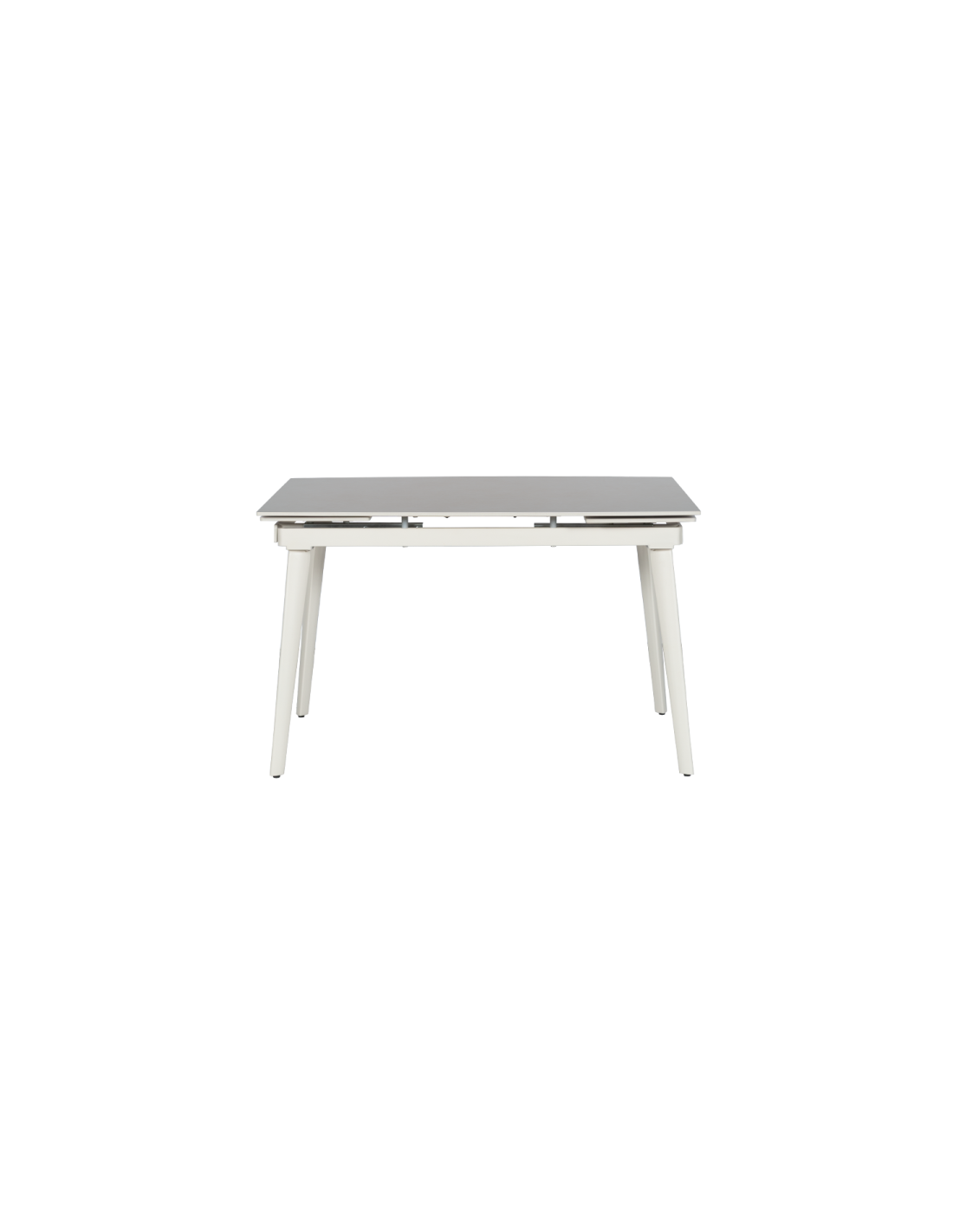 Разтегателна трапезна маса SANARE впечатлява с елегантна визия и практична функционалност, която се вписва идеално в модерния интериор. Плотът е изработен от висококачествена керамика с дебелина 12 мм. Праховобоядисаната метална основа осигурява стабилност и дълготрайност, а разтегателният механизъм позволява лесно увеличаване на дължината при нужда от повече място. Светлият цвят придава усещане за простор и лекота, превръщайки масата в стилен акцент за всяка трапезария.