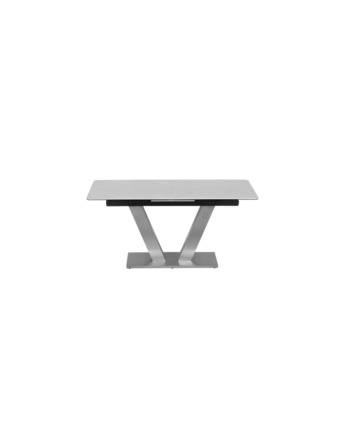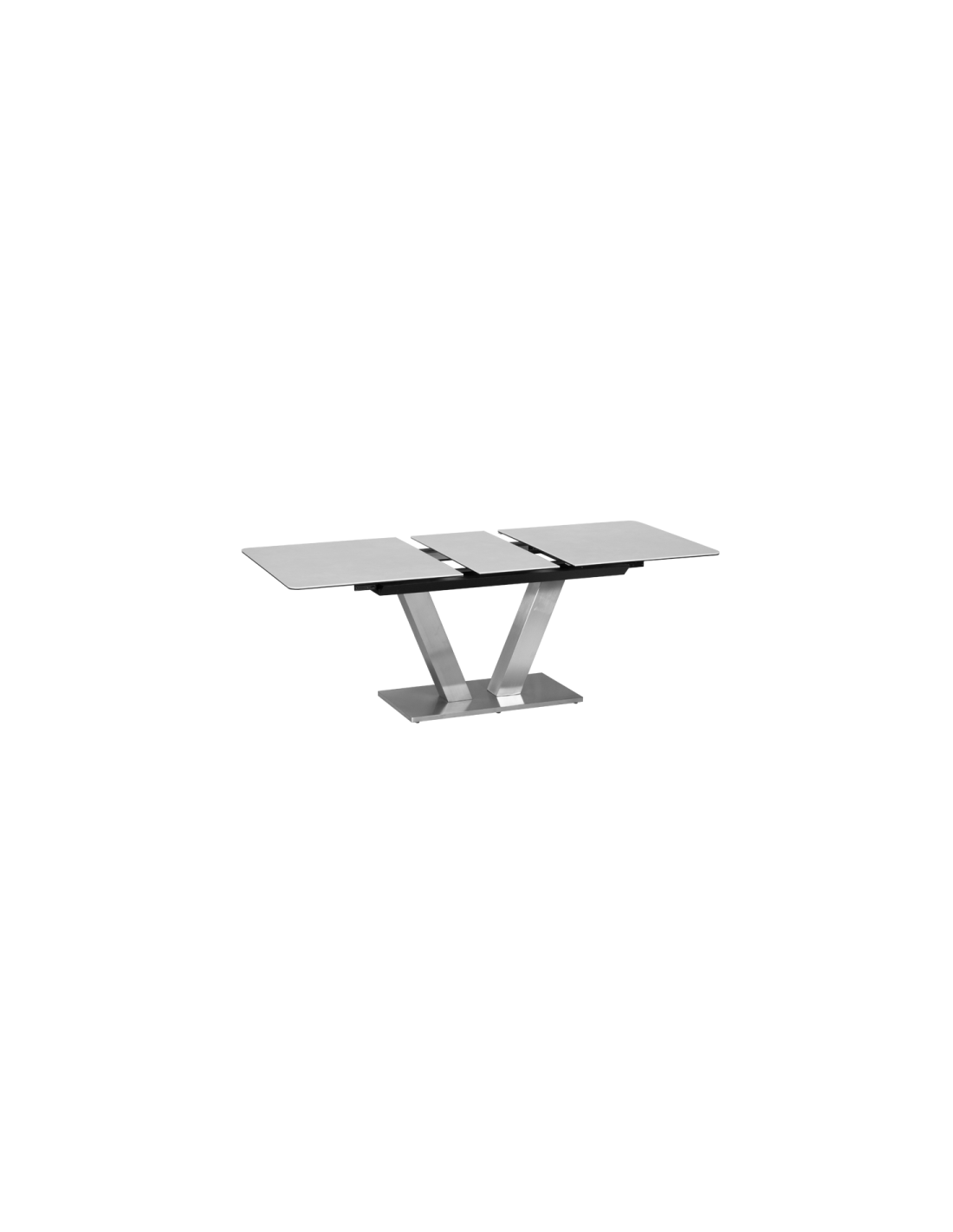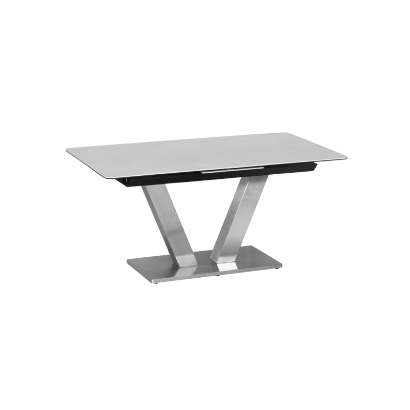 Демонстрация на вкус Трапезната маса DUKLA се отличава с оригинален и функционален дизайн. Нейната основа е от неръждаема стомана, от центъра на която се издига V-образна база, играеща ролята на крака, а интересният правоъгълен плот е изработен от висококачествена керамика и закалено стъкло. За още по-голямо удобство, моделът е снабден с разтегателен механизъм. Интересната визия и форма на модела ще придадат необичаен характер и изискана атмосфера на вашата трапезария! |