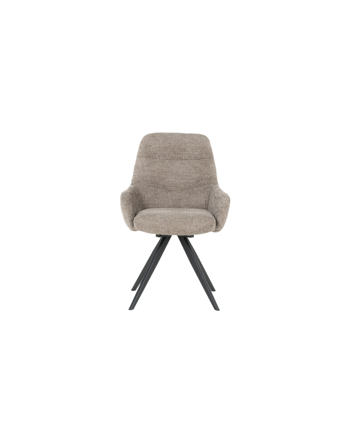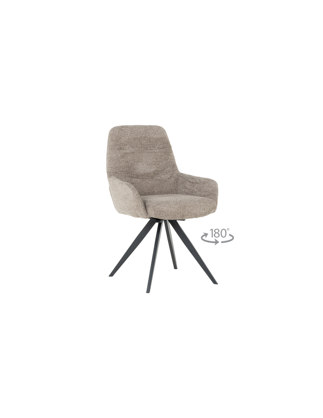 Трапезен стол ASCOT се отличава със стилна и изчистена визия, което го прави подходящ за различни интериори. Моделът разполага с подлакътници, облегалка и седалка, изработени от приятна на допир дамаска. Праховобоядисаната метална основа осигурява стабилност на седящия. Функцията за 180°-градусово завъртане на седалката и връщането ѝ в изходна позиция е практична и дава свобода на движение.
