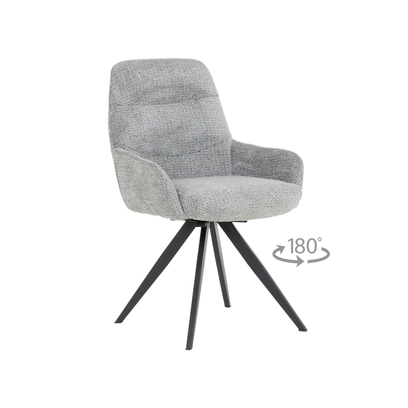 Трапезен стол ASCOT се отличава със стилна и изчистена визия, което го прави подходящ за различни интериори. Моделът разполага с подлакътници, облегалка и седалка, изработени от приятна на допир дамаска. Праховобоядисаната метална основа осигурява стабилност на седящия. Функцията за 180°-градусово завъртане на седалката и връщането ѝ в изходна позиция е практична и дава свобода на движение.