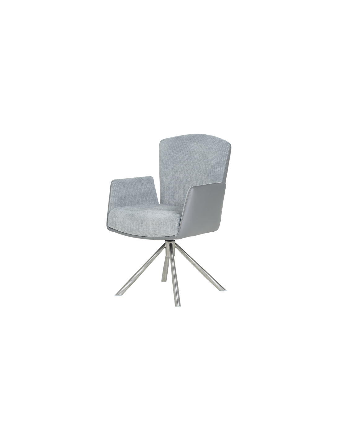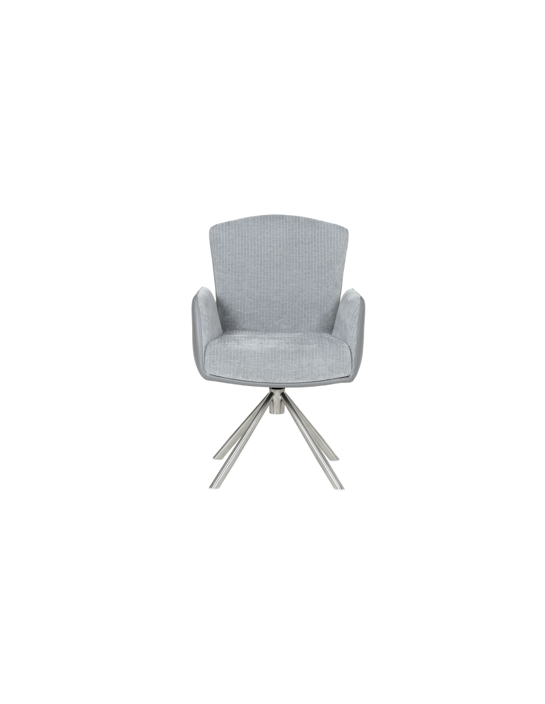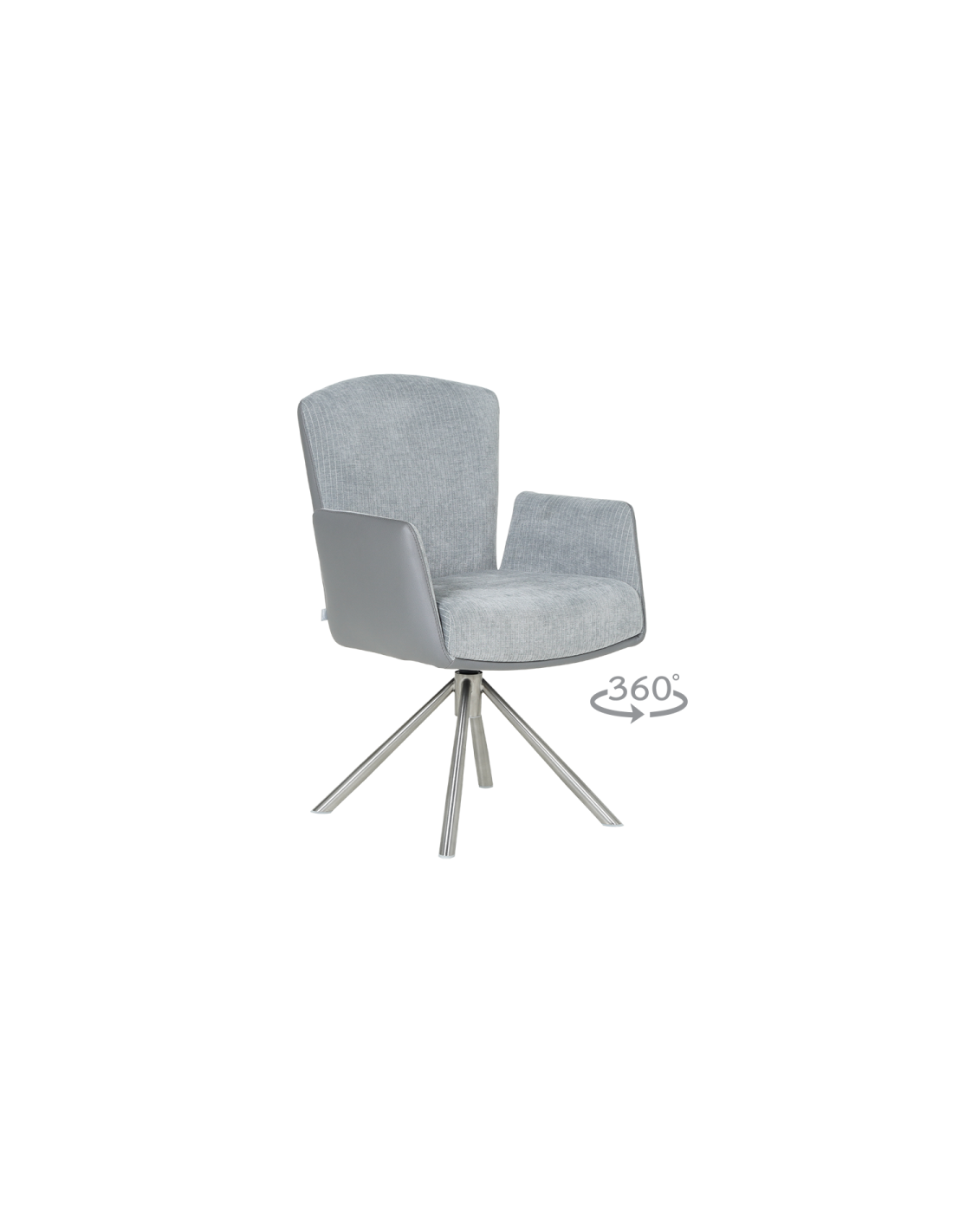 Ефектен дизайн и максимално удобство Трапезен стол SINDI е елегантен акцент за модерния интериор, подходящ както за дома, така и за луксозни обществени пространства. Широката седалка и ергономичната облегалка осигуряват максимален комфорт, допълнен от вградената система от покет пружини, която равномерно разпределя тежестта за оптимално удобство. Облегалката с функция за накланяне назад и високите тапицирани подлакътници предлагат идеалната комбинация за релакс. Столът е снабден с въртящ се механизъм на 360°, който улеснява движението във всички посоки, както и с функция за автоматично връщане в изходна позиция за допълнително удобство. Модерната основа от неръждаема стомана подчертава авангардния дизайн, като същевременно осигурява стабилност и устойчивост. |