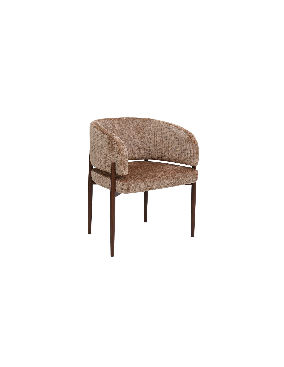Трапезният стол RIMAR съчетава модерна визия с комфорт и прецизна изработка. Тапицираната седалка и облегалка с изчистени извивки осигуряват стабилна опора и приятна мекота при сядане. Издължените метални крака с праховобоядисано покритие в дървесен цвят допълват елегантния силует и придават изискан акцент на интериора.