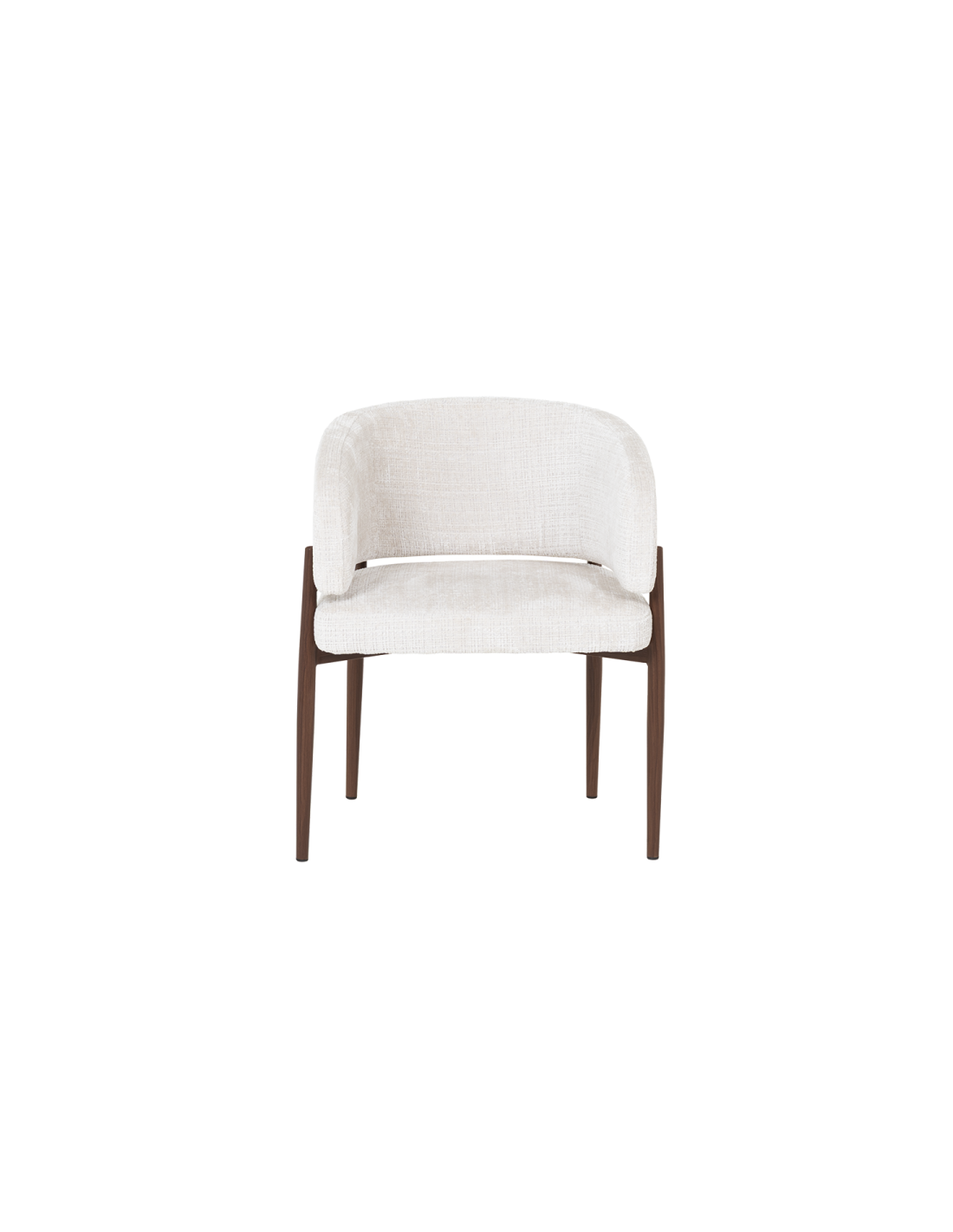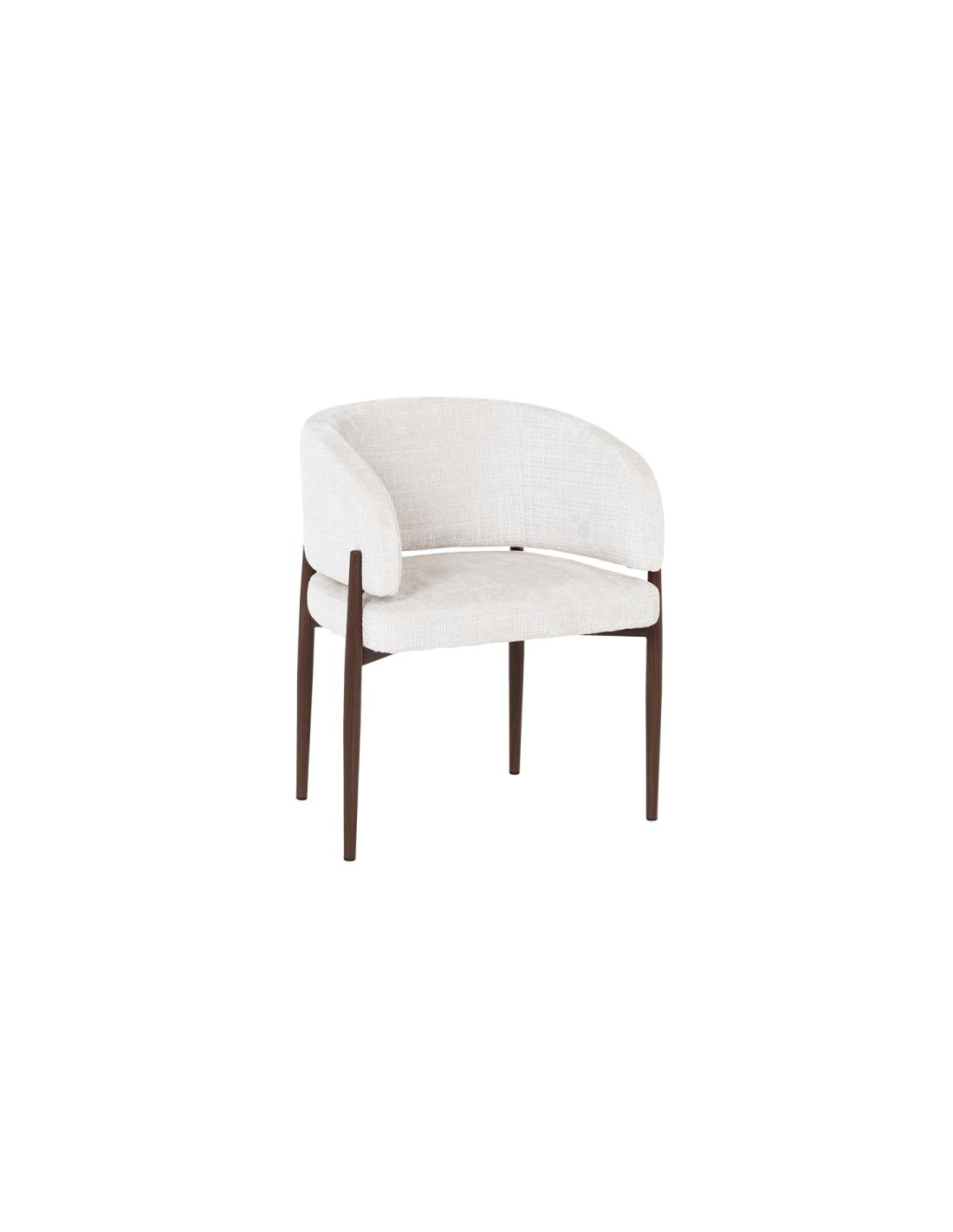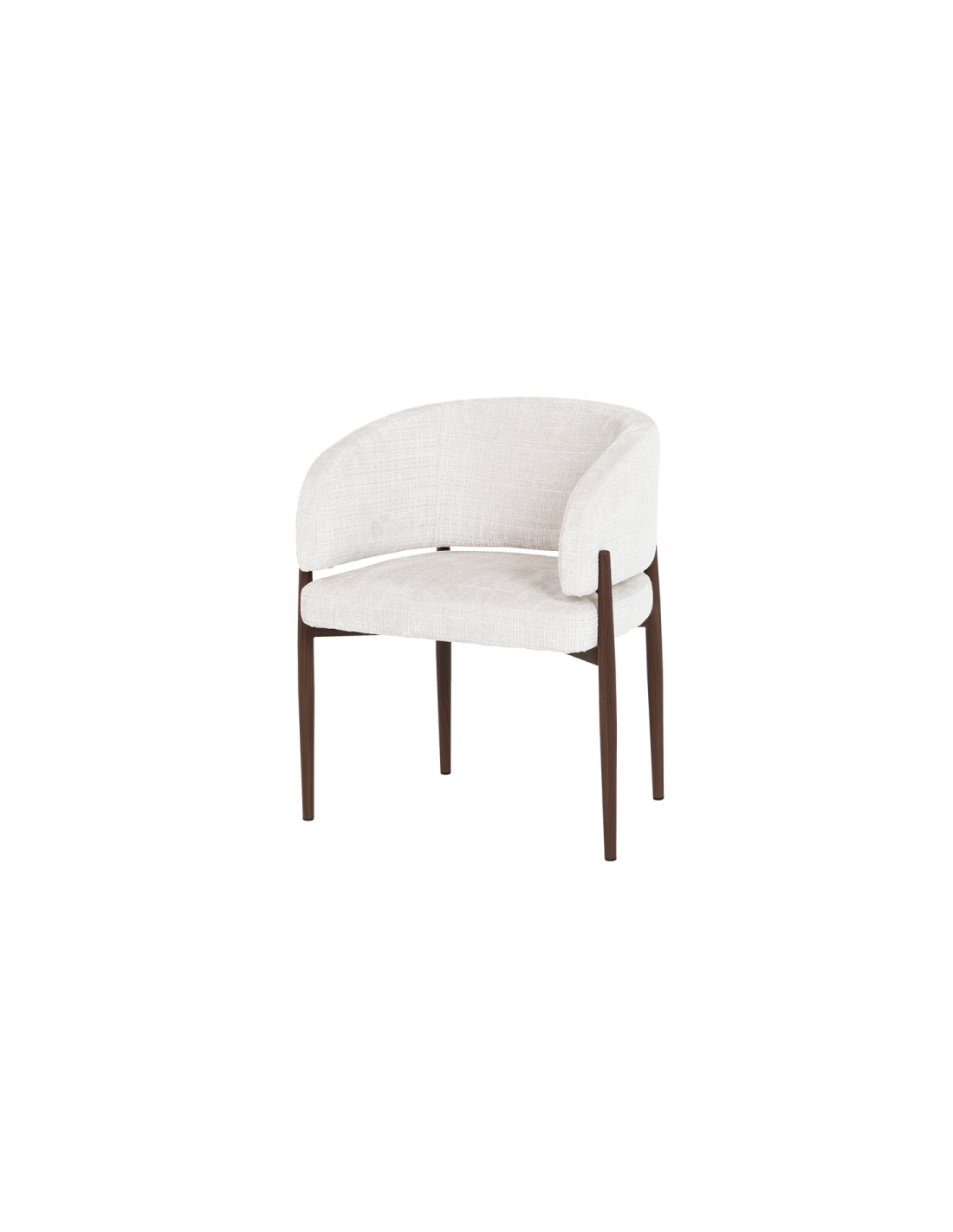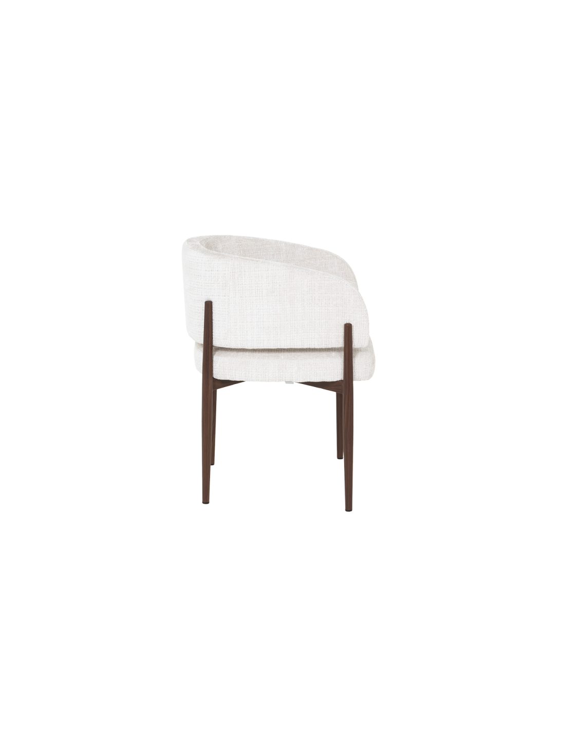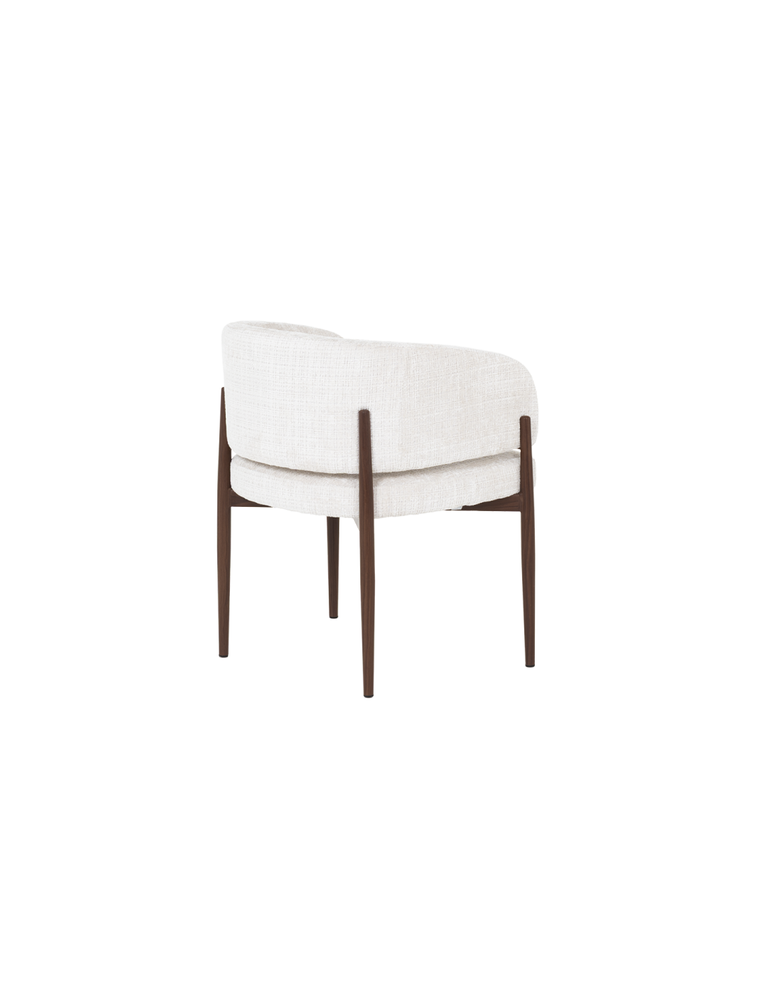 Трапезният стол RIMAR съчетава модерна визия с комфорт и прецизна изработка. Тапицираната седалка и облегалка с изчистени извивки осигуряват стабилна опора и приятна мекота при сядане. Издължените метални крака с праховобоядисано покритие в дървесен цвят допълват елегантния силует и придават изискан акцент на интериора.