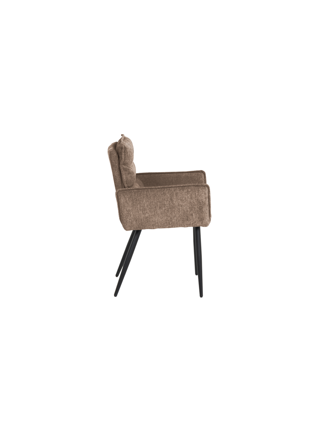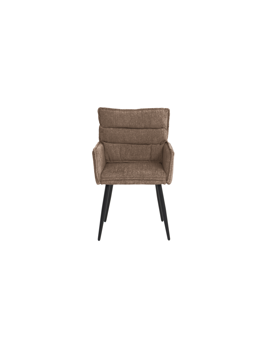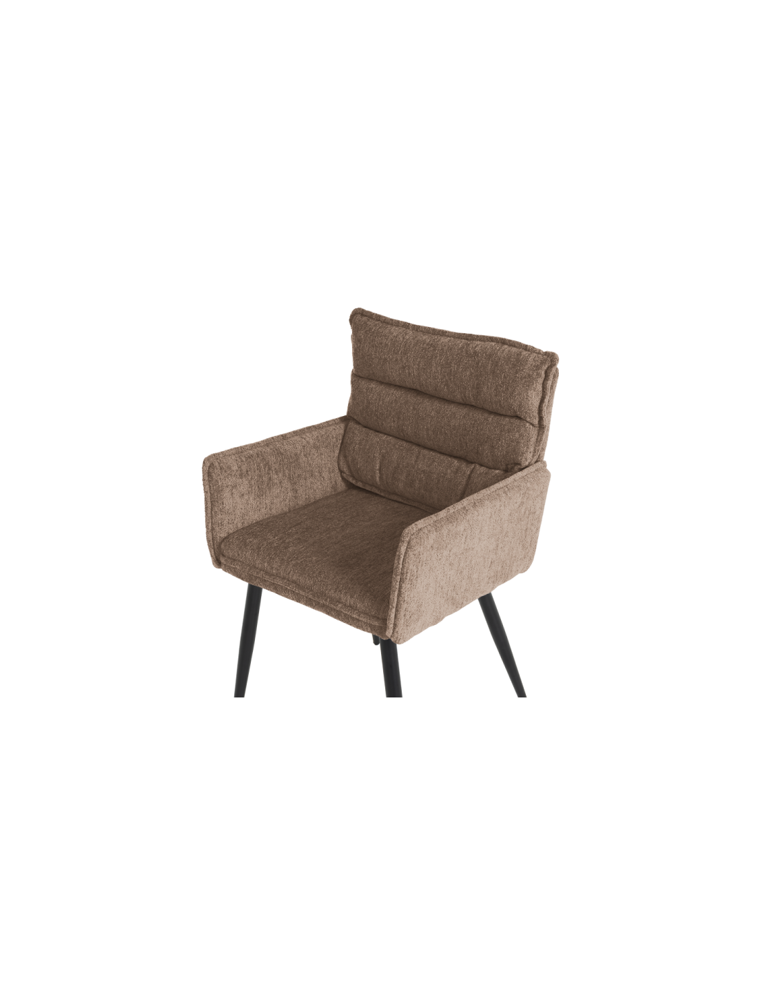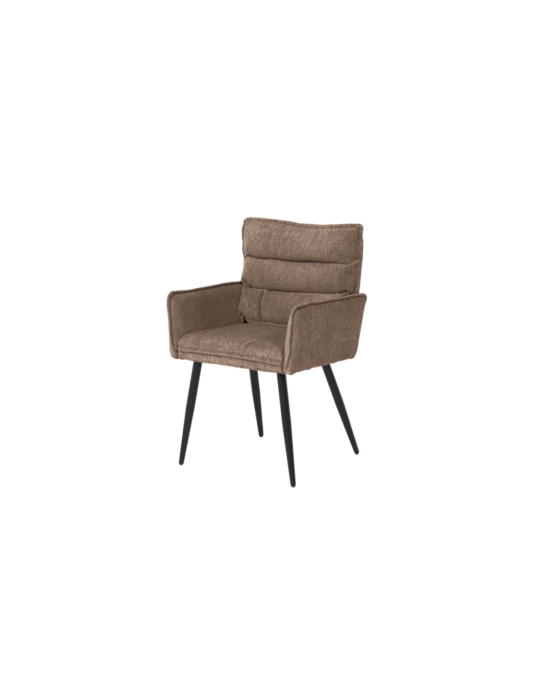 Трапезният стол IKSAN с подлакътници съчетава модерен стил и високо ниво на комфорт. Той е изработен от мека дамаска с пълнеж от полиуретанова пяна, която предлага приятно усещане при седене. Черните праховобоядисани метални крака осигуряват стабилна основа и елегантен завършек – подходящ за всяка модерна трапезария или кухненски кът.