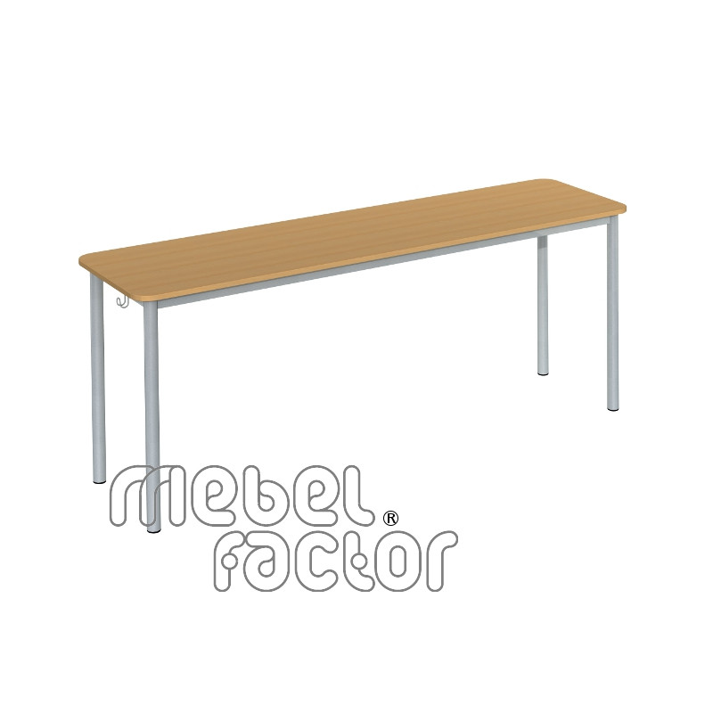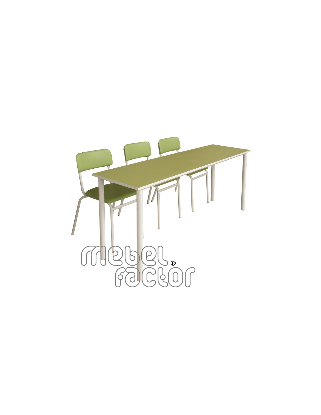 Триместна ученическа маса РОНДО, размер 6. Подходяща за възраст над 14 години. Вариант със заоблени ъгли на плота. Плот с размери 180х50/Н76см., кант 2,0мм. Декори на ламинирано ПДЧ от фирмения картел. Заварена конструкция с крака от тръба 40мм. Включени 2 броя закачалки за ученическа чанта. Полимерно, прахово покритие в цветове по RAL. Произведено в България. Продуктът отговаря на стандарт БДС EN 1729 - "Мебели. Столове и маси за учебни заведения."