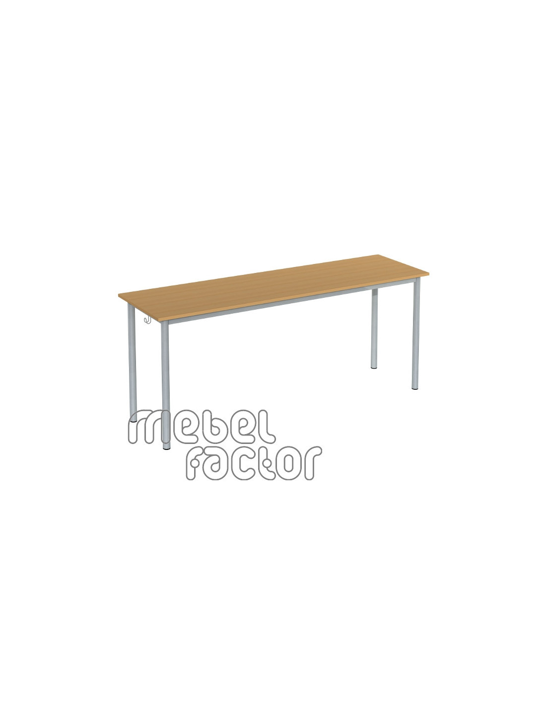 Триместна ученическа маса РОНДО, размер 5. Подходяща за възраст от 11 до 14 години. Вариант със заоблени ъгли на плота. Плот с размери 180х50/Н71см., кант 2,0мм. Декори на ламинирано ПДЧ от фирмения картел. Заварена конструкция с крака от тръба 40мм. Включени 2 броя закачалки за ученическа чанта. Полимерно, прахово покритие в цветове по RAL. Произведено в България. Продуктът отговаря на стандарт БДС EN 1729 - "Мебели. Столове и маси за учебни заведения."