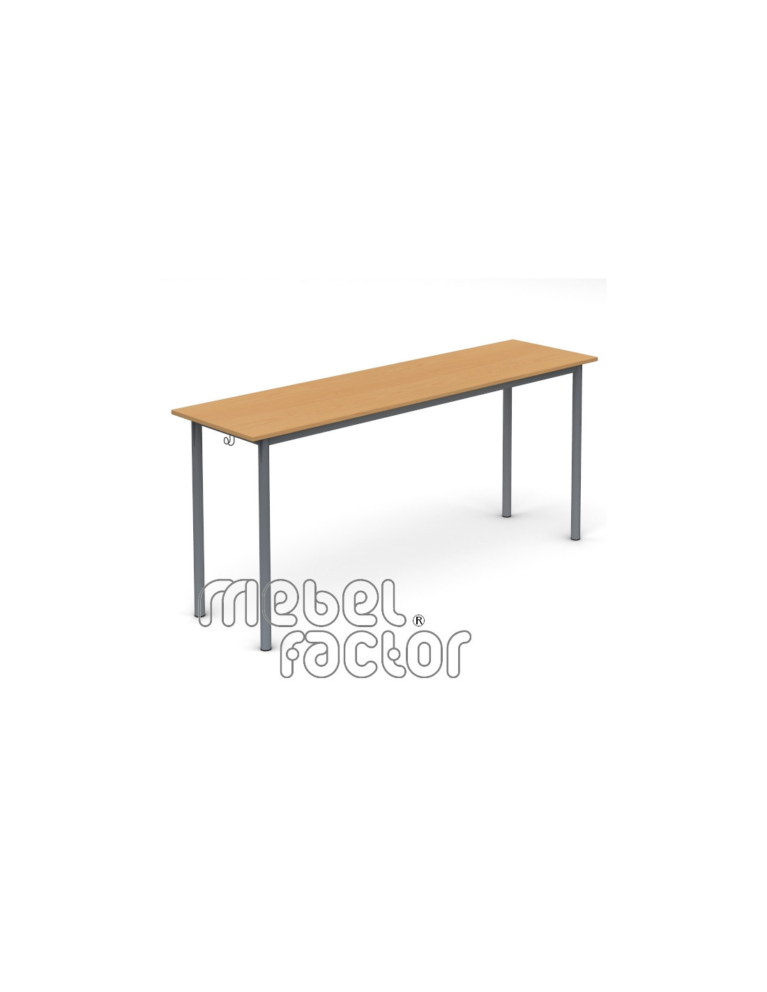 Триместна ученическа маса РОНДО, размер 7. Подходяща за възраст над 18 години. Вариант със заоблени ъгли на плота. Плот с размери 180х50/Н82см., кант 2,0мм. Декори на ламинирано ПДЧ от фирмения картел. Заварена конструкция с крака от тръба 40мм. Включени 2 броя закачалки за ученическа чанта. Полимерно, прахово покритие в цветове по RAL. Произведено в България. Продуктът отговаря на стандарт БДС EN 1729 - "Мебели. Столове и маси за учебни заведения."