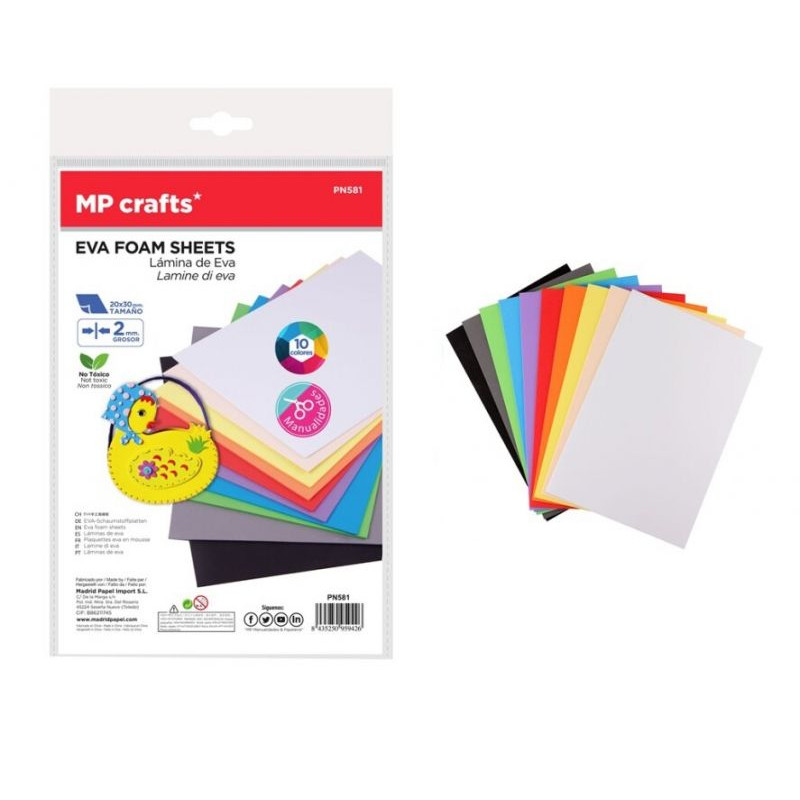 Микропореста гума EVA, листа, А3, 10 цвята 106043