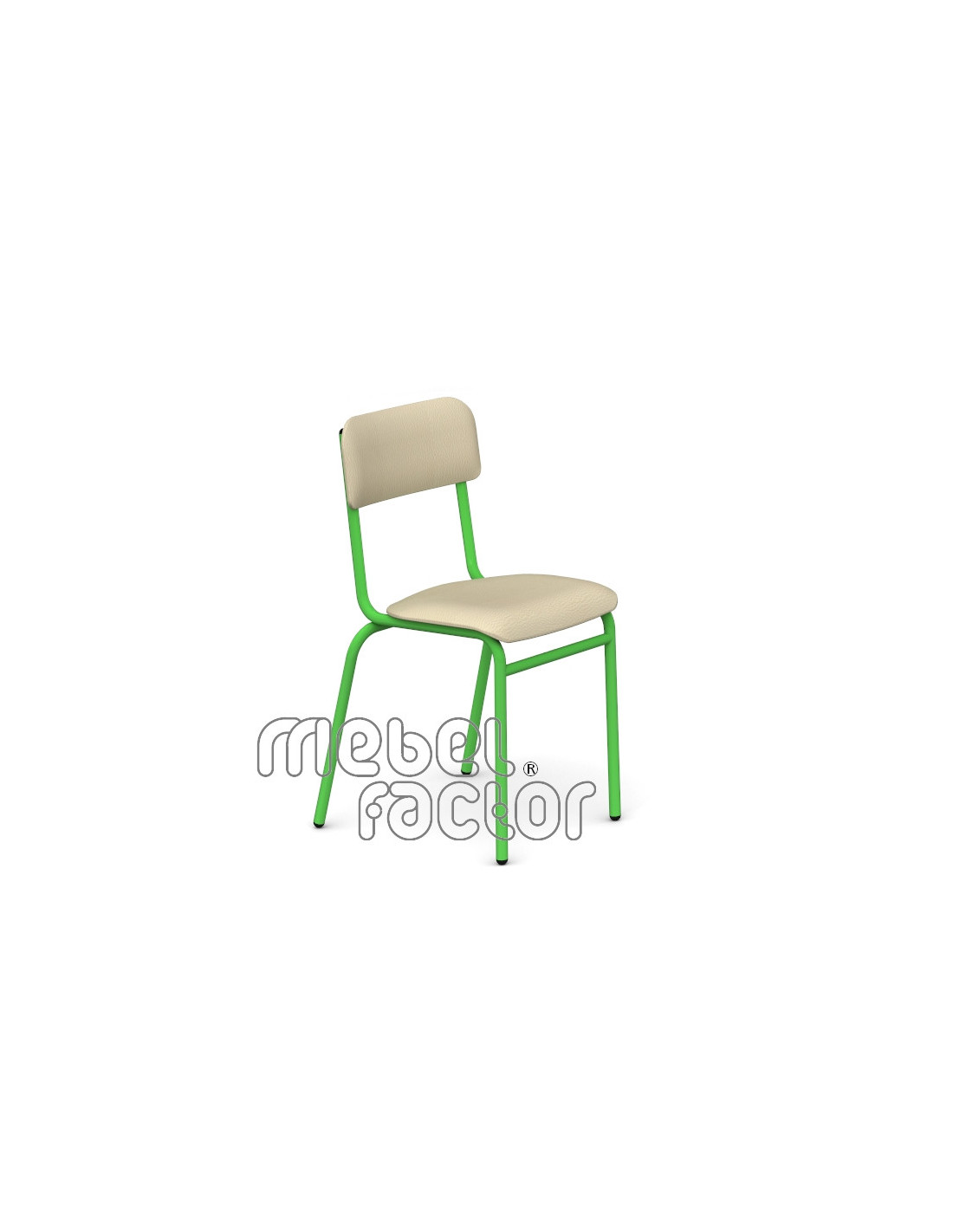 Тапициран ученически стол УНИВЕРСАЛ, размер 5. Подходящ за възраст от 11 до 14 години. Максимално тегло на седящия 100кг. Тапицирани седалка и облегалка от 7мм слоест бук. Седалка 36х36/Н42см, облегалка 36х17см. Конструкция от стоманена тръба 21,3мм. Десени за дамаски и еко-кожи от фирмения картел. Полимерно, прахово покритие в цветове по RAL. Стифиране до 5 броя. Произведено в България. Продуктът отговаря на стандарт БДС EN 1729 - "Мебели. Столове и маси за учебни заведения."