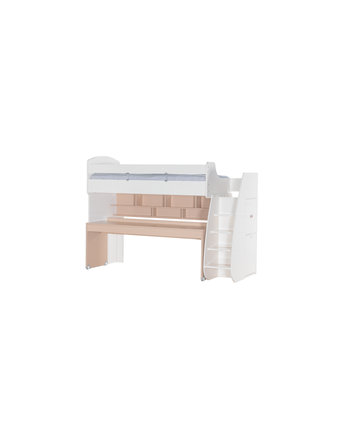 Перфектна комбинация JOYIN е проектирано така, че да се интегрира безупречно с останалите елементи от серията. В комбинация с малкото легло на колелца JOYIN 90х190 и голямото JOYIN 90х200, то предлага практично решение за оптимизация на пространството. Голямото легло събира малкото и бюрото под себе си, създавайки компактен и функционален кът за спане, учене и игра. Така всеки сантиметър от стаята се използва ефективно – подходящ избор за семейства, които търсят практичност и стил в едно. |