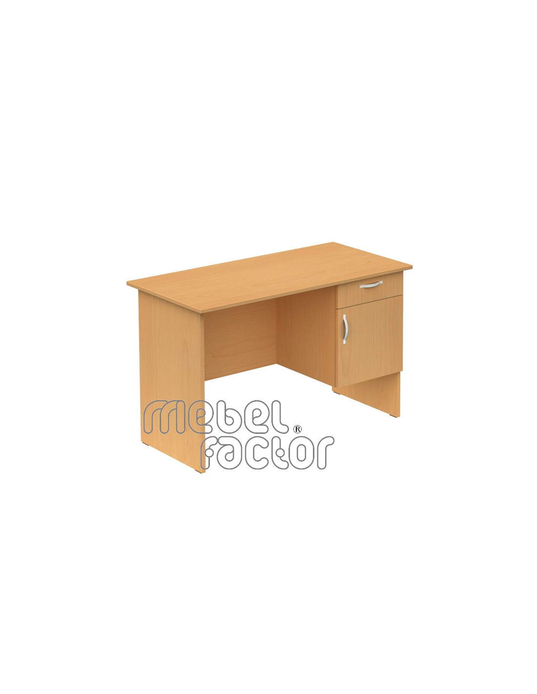 Бюро КОМПАКТ с шкаф и чекмедже. Размери на бюрото 120х60см/Н76cм. Изработено от ламинирано ПДЧ с дебелина 18мм. Плот 120х60см с кант 2,0мм. Кант на детайлите 0,5мм. Възможност за поставяне на ключалка. Всички наши модели се предлагат в разнообразни цветове и покрития. Декори на ламинирано ПДЧ от фирмения картел. Произведено в България.