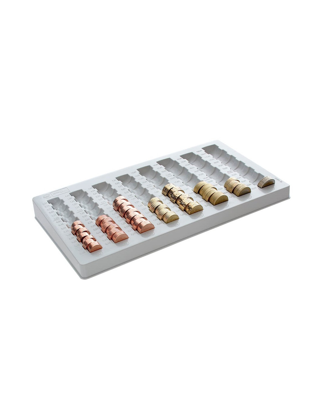 Отделни колони за монети от 1, 2, 5, 10, 50 цента 1 и 2 евро.