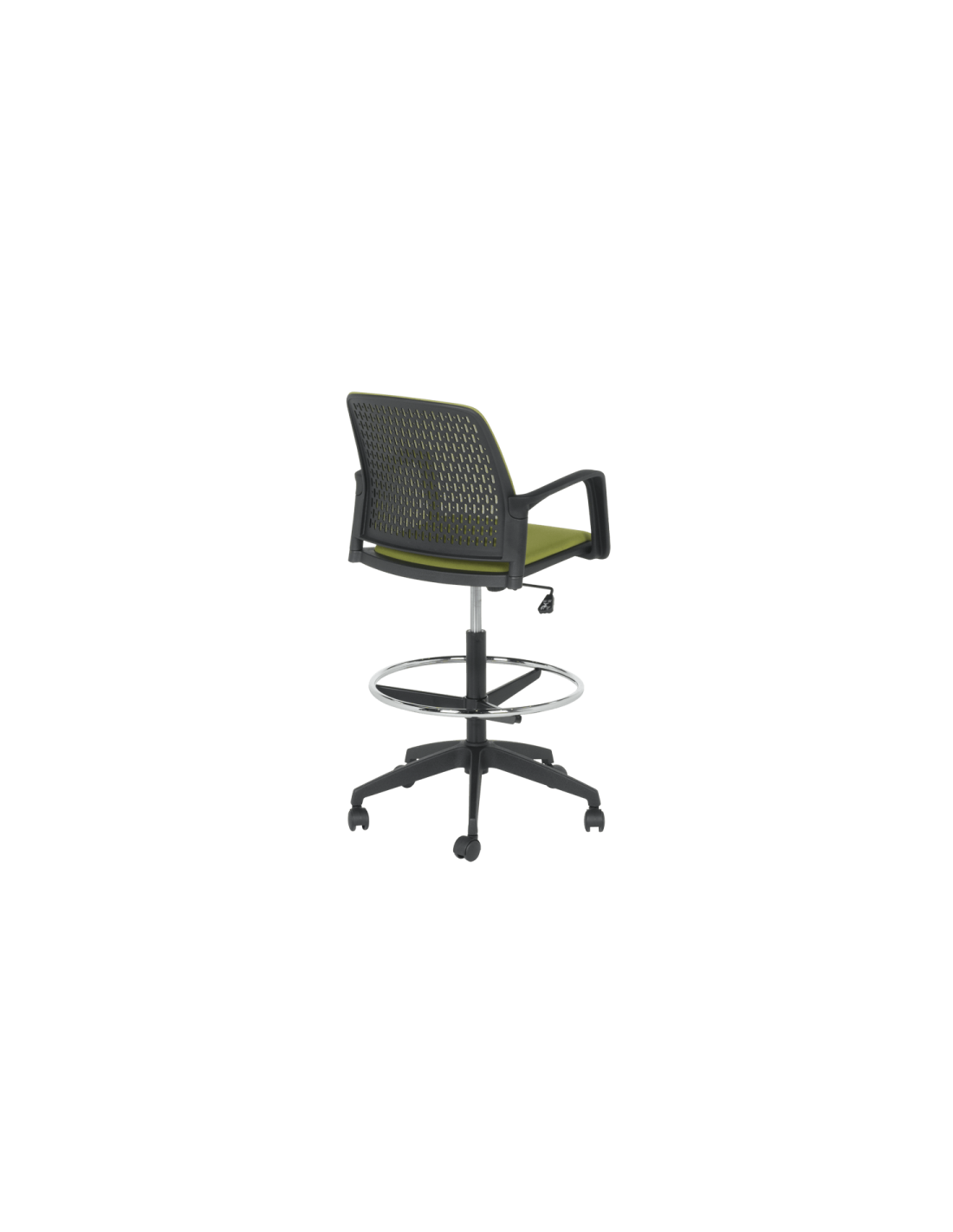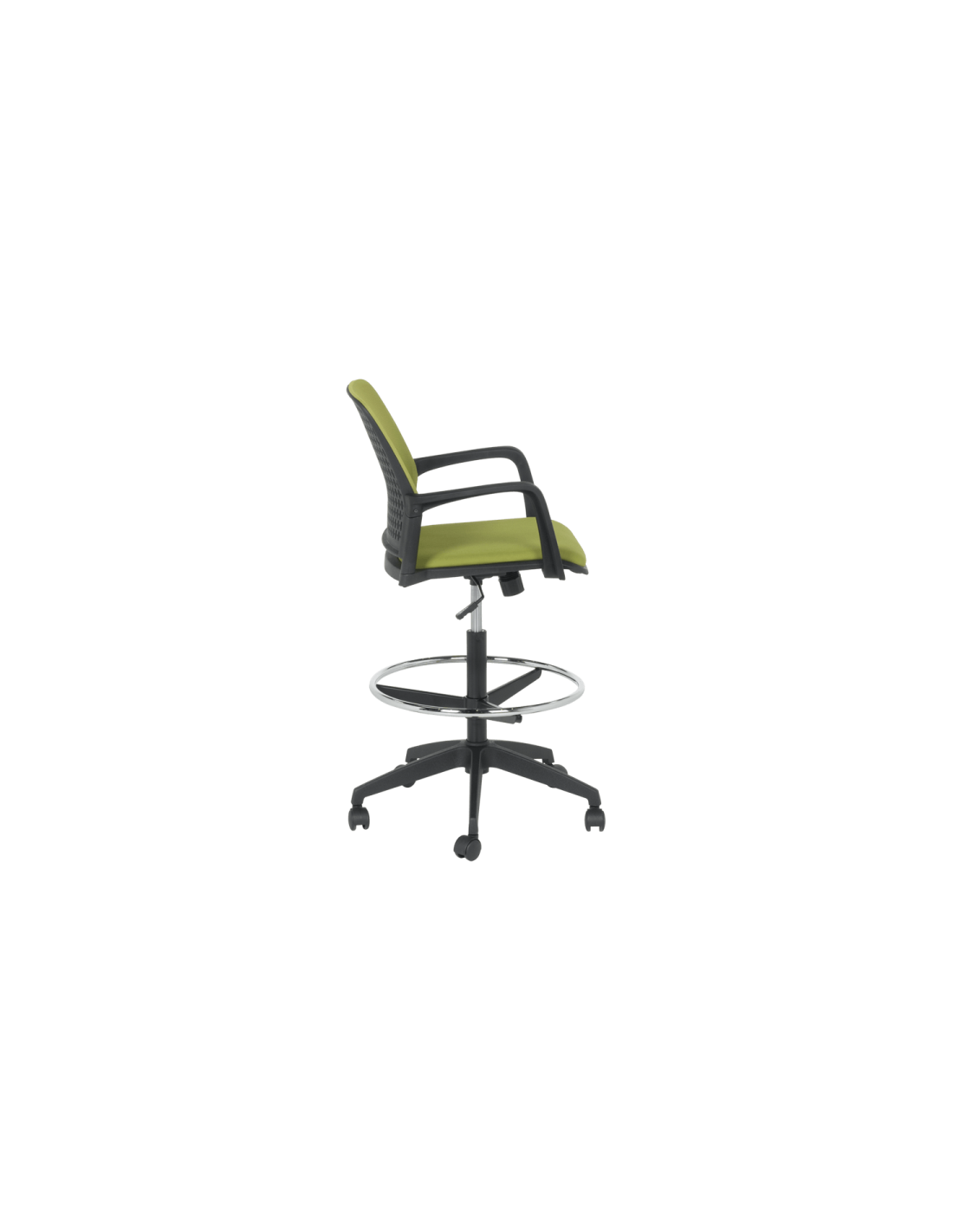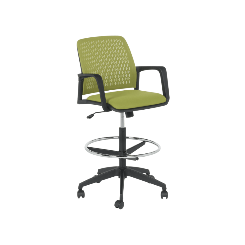 Работен офис стол Carmen 7556 комбинира функционалност и комфорт. Благодарение на регулируемата си височина и хромирана степенка тип ринг, той може да се използва както като обикновен офис стол, така и като висок работен стол. Степенката осигурява удобна опора за краката и предпазва от неприятното усещане за „висящи“ крака при по-висока позиция на седалката. Седалката е тапицирана с дамаска, а облегалката е изработена от полипропилен с мрежеста структура за по-добра вентилация и циркулация на въздуха.