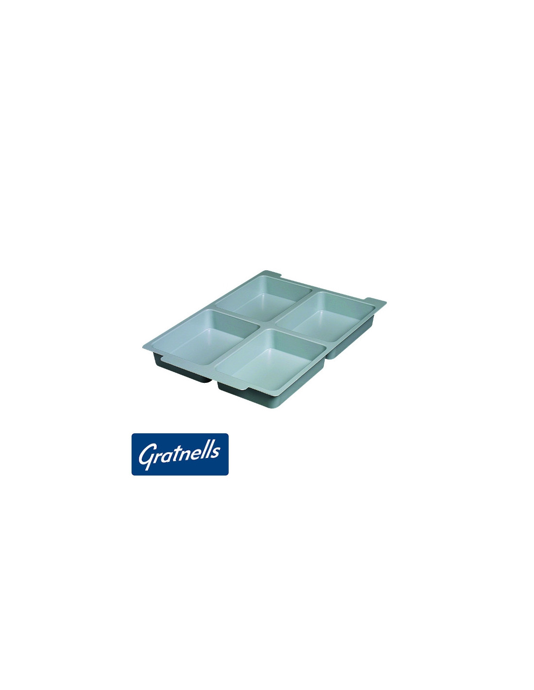 Органайзер с 4 отделения. Подходящ за влагане в плитък контейнер F1. Изработен от светло сив полистерен. Размер на отделенията: 115x155мм. Продуктът е напълно рециклируем.